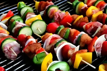 - Boerenvleessalade gegarneerd met vleeswaren en vers fruit